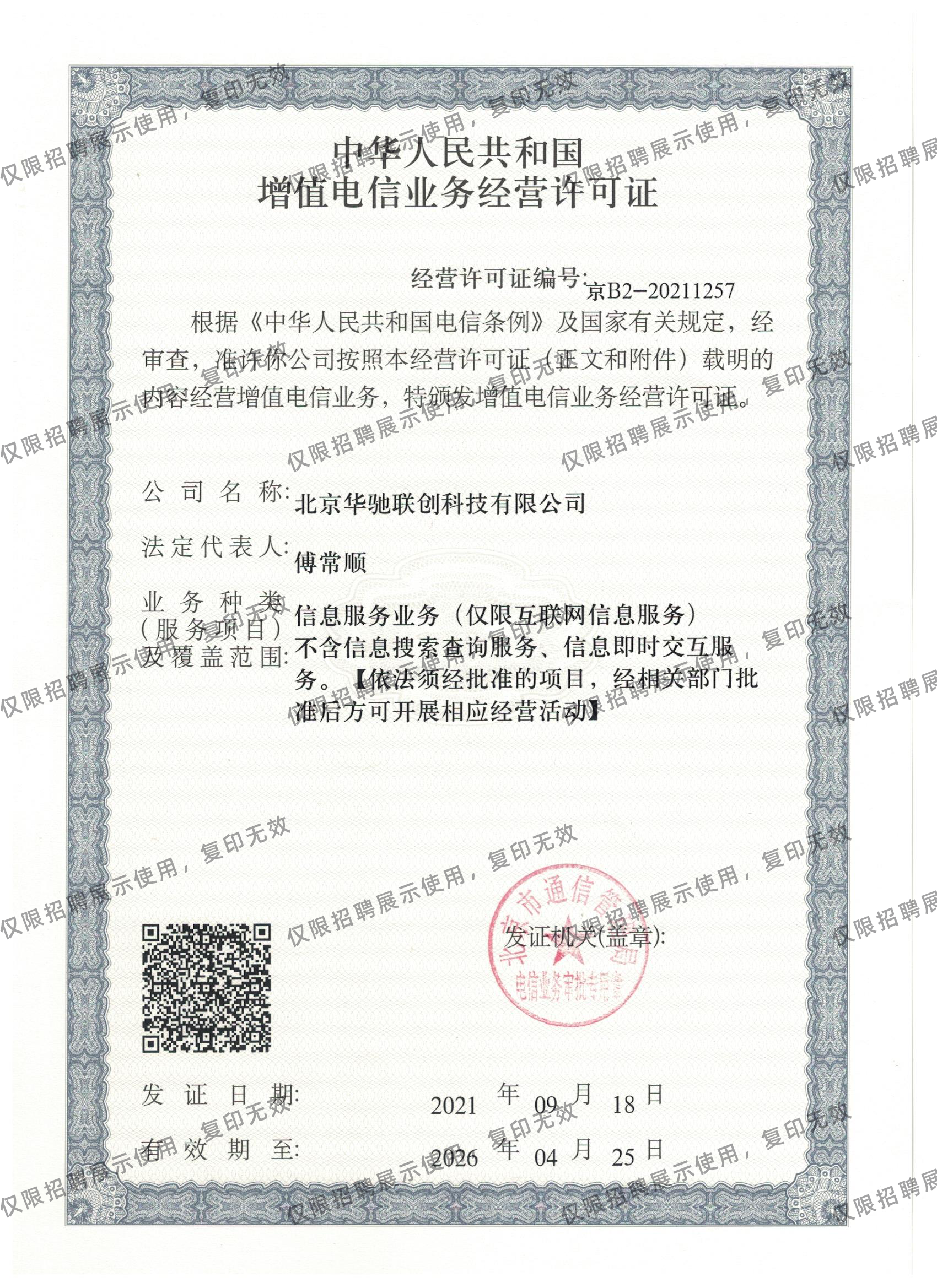 人力资源服务许可证 营业执照 增值电信业务经营许可证